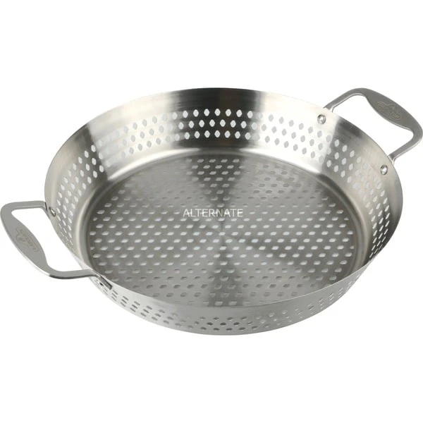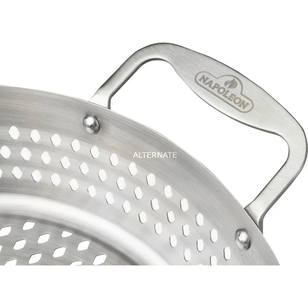 Mit dem Napoleon Wok-Gemüsekorb aus Edelstahl bereitet man das ideale Grillgemüse zu. Dank der vollständig gelöcherten Boden- und Seitenflächen wird das Grillgut tatsächlich gegrillt und nicht im eigenen Saft gegart, das schafft Grillaroma. Seitliche Griffe machen den Wok-Korb besonders handlich. So kann er am Grill beliebig variiert und das fertige Gericht sogar am Tisch serviert werden. Der Grill Wok-Korb ist aus hochwertigem Edelstahl gefertigt und für die Spülmaschine geeignet.Art.-Nr.: 1591722