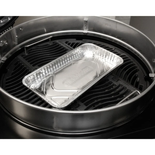 Mit den Fettauffangschalen 62008 von Napoleon kann man den Grill sauberhalten und es bleibt mehr Zeit für den Grillgenuss. Manchmal ist ein Abtropfen von Fleischsäften und Fetten nicht zu verhindern. Hier kommen die Alutropfschalen ins Spiel. Sie sammeln austretende Fette und Säfte. Mit der Verwendung von Alutropfschalen schützt man den Grill und spart wertvolle Zeit bei der Reinigung. Oder man füllt bei langen Grillzeiten einfach Getränke oder Flüssigkeiten in die Grillschale. Der so entstandene Dampf sorgt für besonders saftige und leckere Speisen. Die Alutropfschale unter dem Grillgut (Drehspieß) oder unter dem Grillrost fängt die austretenden Säfte auf. Das bietet gleich zwei Vorteile: Einerseits werden die Flammenschutzeinsätze und das Grillsystem nicht verschmutzt. Andererseits sammelt man so leckere Fleischsäfte und kann passende Saucen zum Grillgericht zubereiten.Art.-Nr.: 1404562