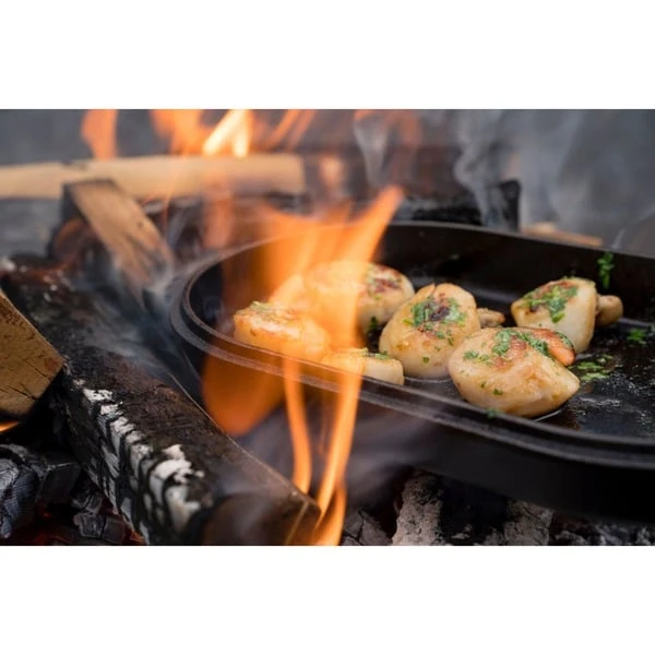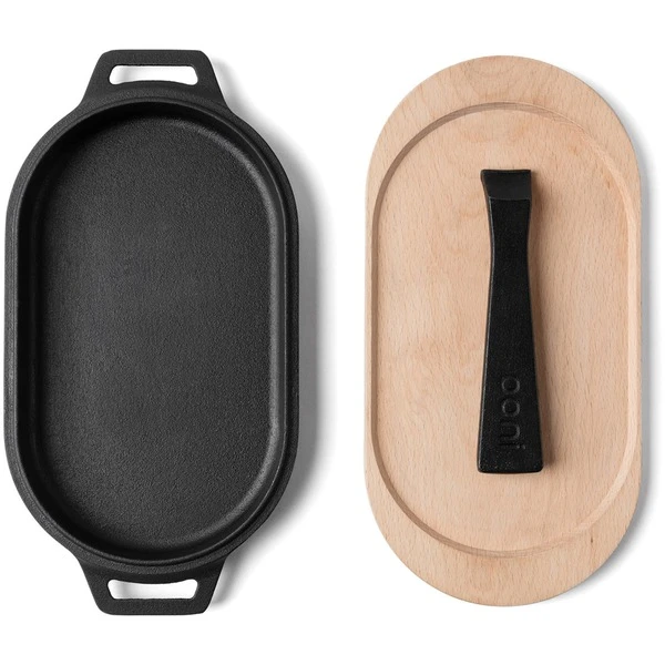 Die gusseiserne Sizzler-Pfanne von Ooni hat die perfekte Größe zur Verwendung mit allen Ooni-Pizzaöfen. Die vielseitige Grillpfanne mit glatter Grillfläche eignet sich für Bacon oder Spiegeleier, Fisch, Meeresfrüchte oder Gemüse. Das robuste Gusseisen nimmt die Hitze schnell auf und verteilt sie gleichmäßig auf die gesamte Fläche. Mit dem speziell entworfenen abnehmbaren Griff lässt sich die Ooni-Sizzler-Pfanne sicher in den Ofen hineinschieben und wieder aus dem Ofen herausholen. Auf dem mitgelieferten Sockel aus FSC-zertifiziertem Holz kann man das fertige Gericht dann direkt am Tisch servieren. Die FSC Zertifizierung besagt, dass zur Herstellung ausschließlich Hölzer aus nachhaltiger Forstwirtschaft verwendet werden.Art.-Nr.: 1642452