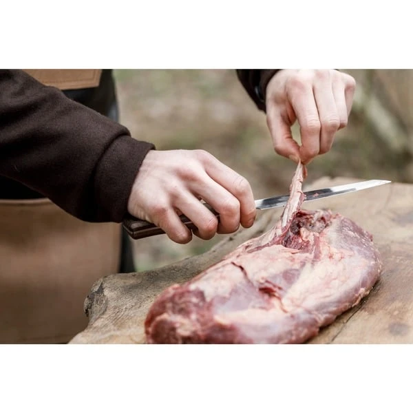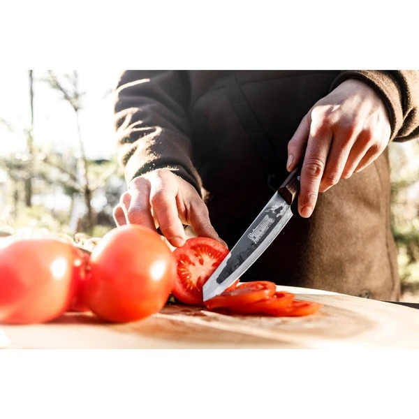 Das Petromax Allzweckmesser apknife14 ist ein in Handarbeit in Solingen gefertigtes, vielseitiges Messer zum Schneiden von Grillgut und Zutaten. Hochwertiger Stahl und ein robuster Griff aus Walnussholz sorgen dafür, dass das rustikale Messer im Petromax-Design mit Schriftzug und Drachenlogo ein verlässliches Werkzeug ist. Mit einer Materialstärke von 2mm kann man mühelos Kräuter hacken, Tomaten teilen oder Zwiebeln schneiden. Durchgehender rostfreier Stahl und der fugenlos vernietete Griff ermöglichen eine sichere Handhabung und Hygiene. Das Petromax Allzweckmesserist ein individuelles Messer, das mit starkem Design, präziser Schärfe und perfekter Verarbeitung punktet. Die Oxidschicht und der herausragende Schliff in Handarbeit machen das Messer zu einem ganz persönlichen Werkzeug, jedes Stück ein Unikat. Die Klinge des Petromax Allzweckmessers hat eine Länge von 14cm und wurde per Hand in Solingen gehärtet und geschliffen. Diese Eigenschaften machen das Messer besonders scharf, langlebig und widerstandsfähig. So wird es zum unverzichtbaren Utensil für jedes Kocherlebnis im Freien.Art.-Nr.: 1908405
