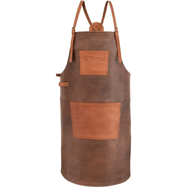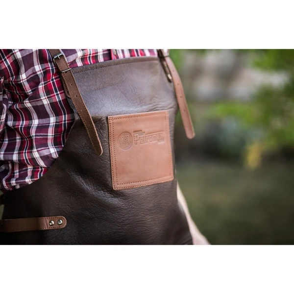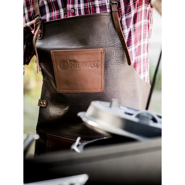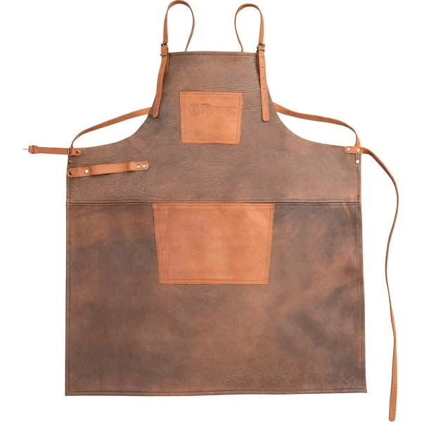 Die Petromax Büffelleder-Schürze ist der optimale Schutz vor Fettspritzern und Beschmutzungen bei Grillabenteuern jeder Art. Zum einen bietet sie einen weichen Sitz sowie gleichzeitig optimale Strapazierfähigkeit, zum anderen sorgt das verstellbare gekreuzte Rückenband für einen angenehmen Schultersitz. Das Rückenband sowie das separate Taillenband lassen eine individuelle Anpassung zu und geben festen Halt. Die verstärkten Nähte und genieteten Schlaufen und Bänder bieten Langlebigkeit und höchste Qualität, zeitgleich ermöglicht die Büffelleder-Schürze – aufgrund der durchdacht platzierten Brust- und Bauchtasche sowie dem seitlich angebrachten Halteriemen – absolute Funktionalität. Nun finden Handtuch, Grillbesteck und Kochutensilien ihren angestammten Platz. Durch schonende Gerbung und Färbung des Materials wird die natürliche Vollnarbung des Büffelleders beibehalten und gibt der Schürze von Beginn an eine ursprüngliche und einzigartige Patina. Die Kombination von Dunkelbraun mit cognacfarbenen Applikationen verleiht der Büffelleder-Schürze ab-x einen ursprünglichen Charme.Art.-Nr.: 1533319