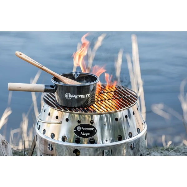Mit dem schwarzen Petromax Emaille Stieltopf 1 Liter bekommt das Kochen nicht nur einen nostalgischen Charme, sondern geht auch noch leicht von der Hand. Bei Streifzügen durch die Natur oder beim Campen, das robuste Kochgeschirr aus Emaille ist durch geringes Eigengewicht ein idealer Begleiter. Der Holzstiel dient außerdem als ein natürlicher Hitzeschutz und ermöglicht auch das Hantieren über dem Feuer. Dank der Innenskalierung findet man auch unterwegs das richtige Maß für den Topf. Die Oberfläche ist kratzfest und lässt sich mühelos reinigen. Der Emaille Stieltopf erfüllt die Ansprüche an eine robuste, unkomplizierte Handhabung und Pflege in vollem Umfang. Der Petromax Emaille Stieltopf ist in zwei Farben und je zwei Größen erhältlich, für alle Herdarten und für offenes Feuer geeignet.Art.-Nr.: 1825494