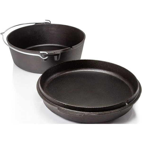 Der Feuertopf ft6-t von Petromax eignet sich für 4 – 8 Personen. Die Petromax Feuertöpfe, auch als Dutch Oven bezeichnet, sind ideale Begleiter für Draußen-Aktivitäten wie Reisen, Camping, etc. Mit ihnen garen Speisen, wie z.B. Fleisch und Gemüse, sehr schonend im eigenen Saft über offenem Feuer oder im heimischen Backofen sowie auf allen Herdarten. Der einzigartige Geschmack entsteht durch die konstante Rundumwärme im Topf. Die Deckel der Feuertöpfe können zudem auf Wunsch als Servierplatte oder Pfanne genutzt werden. Dank der vorbehandelten Oberfläche (seasoned finished) ist der robuste Petromax Feuertopf aus Gusseisen sofort verwendbar. Mit den Petromax Feuertöpfen kann man draußen leckeres und gesundes Essen für Familie und Freunde zubereiten.Art.-Nr.: 1532722
