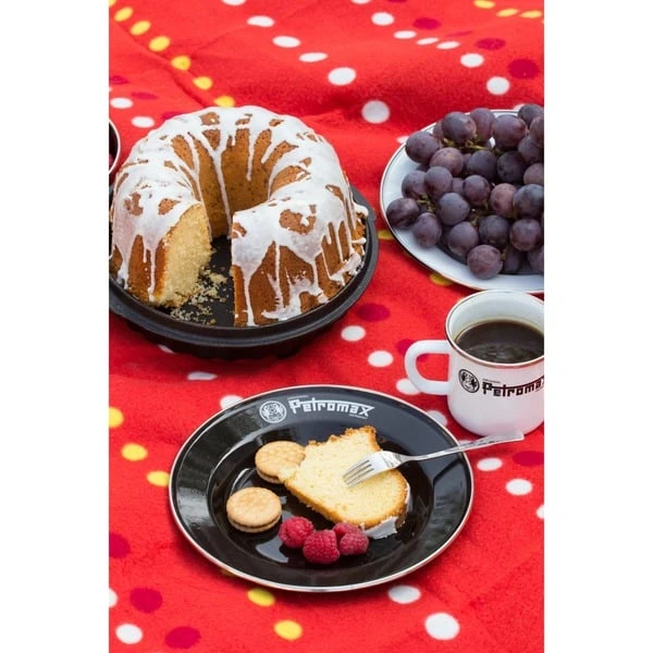 Mit der gusseisernen Gugelhupfform gf1 von Petromax backt man nicht nur leckeren Kuchen, auch frisches Brot und Aufläufe gelingen in der klassischen Kranzform ideal. Der Gussdeckel der Form vereint mehrere Anwendungsmöglichkeiten: Er ermöglicht das Backen mit Oberhitze in der Draußen-Küche und verfügt umgedreht über eine Tortenbodenfunktion. Die gusseiserne Gugelhupfform mit dem praktischen Tragehenkel aus Edelstahl zum Aufhängen ist hervorragend für das Backen und Kochen über offenem Feuer geeignet, kann aber auch problemlos für das Backen im Backofen verwendet werden. Das Gusseisen der Gugelhupfform stellt sicher, dass die Wärme effizient gespeichert und gleichmäßig an das Backgut weitergeleitet wird. Außerdem ist die Oberfläche bereits vorbehandelt (seasoned finished) und macht somit ein erstmaliges Einbrennen unnötig. Auf dem Deckel der Gugelhupfform lassen sich dank erhöhtem Rand Glut oder Holzkohle einfach platzieren. Auf diese Weise werden Kuchen, Brot oder Auflauf gleichmäßig gar. Doch die Form bietet noch mehr. Der Deckel mit Tortenbodenform kann umgedreht zum Backen von Tortenböden sowie für leckere Quiches und Tartes genutzt werden. Auf seine drei Füße gestellt, dient er zudem als Pfanne oder als praktische Servierplatte.Art.-Nr.: 1533728