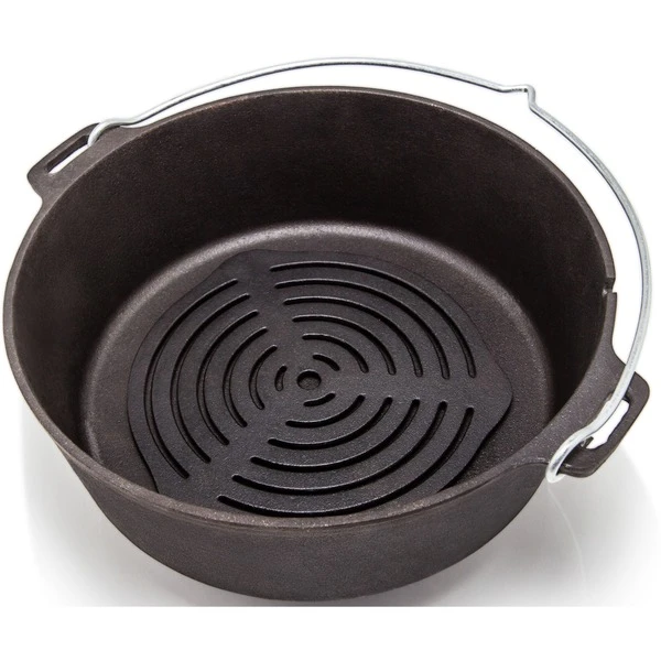 Der Petromax Einsatz aus massivem Gusseisen sorgt für eine erstklassige Hitzeverteilung und ermöglicht das Backen und Garen in den Feuertöpfen (optimale Passform in ft4.5, ft6 und ft9) ohne Anbrennen. Auf drei Noppen steht der Gussrost-Einsatz sicher im Feuer, auf dem Grill oder auf dem Tisch als Untersetzer. Beim direkten Grillen in der Glut brutzelt er das perfekte Grillmuster ins Fleisch.Art.-Nr.: 1533660
