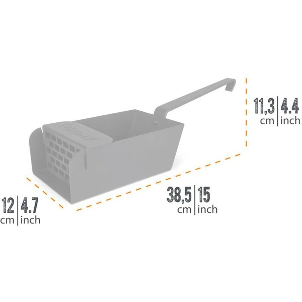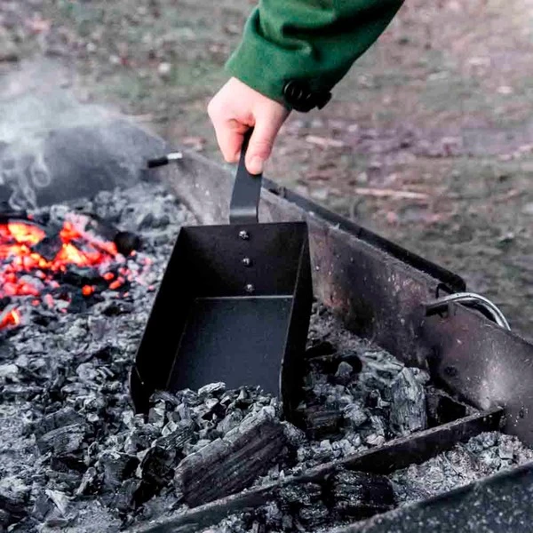 Die Petromax Kohlenschaufel ist ein idealer Helfer beim Befüllen und Reinigen von Grill- und Feuerstellen. Die schwarz lackierte Schaufel aus Stahl sorgt mit der großen Ablagefläche für Kohle und Briketts für ein schnelles Auffüllen des Grills. Kohle- und Aschereste bleiben dank hoher Seitenränder auf der Schaufel und lassen sich sauber transportieren. Nach dem Grillvergnügen sind meist nicht alle Kohlen oder Briketts restlos verbrannt. Die Kohlenschaufel mit einsetzbarem Sieb sorgt dafür, dass die Kohlenreste sauber von der Asche getrennt werden und beim nächsten Kocherlebnis im Freien wieder zum Einsatz kommen können. Auch die Reinigung des Grills oder der Feuerschale geht mit der großen Kohlenschaufel leicht von der Hand. Der (separat erhältliche) Petromax Holzgriff für schmiedeeiserne Pfannen passt übrigens auch an die Kohlenschaufel, umschließt passgenau den Stiel und schützt die Hand vor Hitze.Art.-Nr.: 1914394