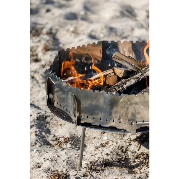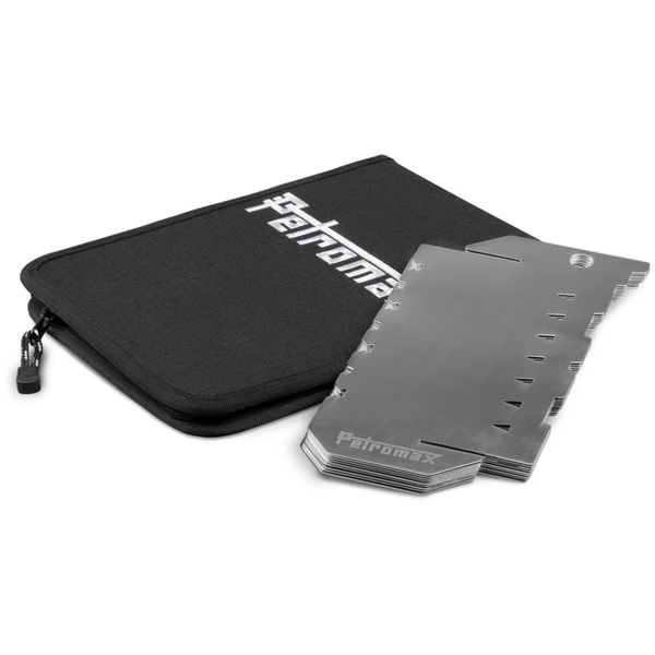 Der Windschutz mit Steckfunktion von Petromax ist ein praktischer und platzsparender, individuell zusammenfügbarer Windschutz aus neun Segmenten für die Feuerstelle, wo immer man gerade ist. Schnell und einfach lassen sich die neun Segmente alle oder nur teilweise miteinander verbinden. So kann man die Größe des Windschutzes selbst bestimmen, bis zu 60cm im Durchmesser. Die unteren und oberen Aussparungen ermöglichen das verrutschsichere Übereinanderstapeln. Außerdem kann man die Auskerbungen an der Oberseite als Auflagefläche für Grill- oder Schaschlik-Spieße nutzen. Fünf verbundene Windschutz-Elemente bieten z.B. die ideale Basis für den Atago Grillrost. Damit hat man eine flexible Feuer- und Grillstelle, die sich mit allen Petromax Pfannen, Kesseln, Perkolatoren und Sonderformen kombinieren lässt. Der Steck-Windschutz ist für alle Grill- und Feuerschalen geeignet, die unteren Auskerbungen sorgen für einen festen Sitz auf jeder Größe. Man kann sie ebenso auf alle Feuertopfdeckel von ft6 bis ft12 positionieren und mit geschützter Oberhitze kochen, da die Kohlen vom umlaufenden Luftzug abgeschirmt durchglühen können. Das flache Packmaß und die im Lieferumfang enthaltene Transporttasche machen das Mitnehmen ins nächste Abenteuer besonders einfach.Art.-Nr.: 1872482